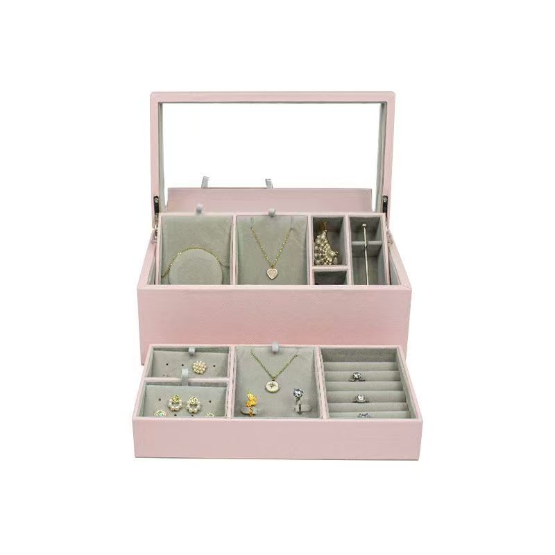 Custom Leather Lady Jewelry Organizer Display Watch Necklace Pendant Earring Ring Large Jewelry Storage Box