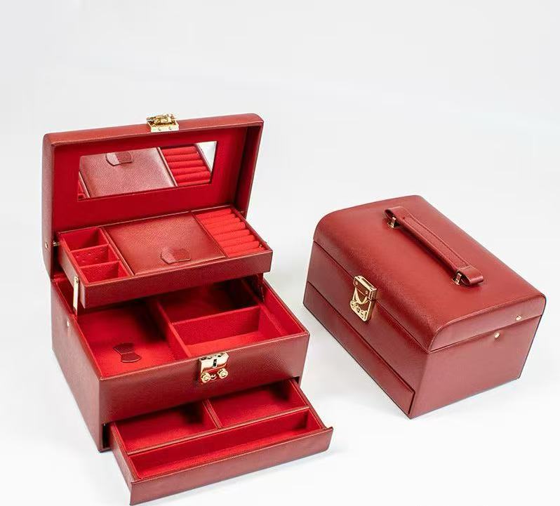 Multi-function Jewelry Box Three Layer Lock Leather Jewelry Storage Box Necklace Ring Earring Jewelry Box