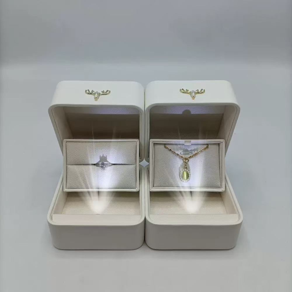 Wholesale Luxury LED Box with Lights Creative Deer Buckle Proposal Ring Pendant Jewelry Box with LOGO