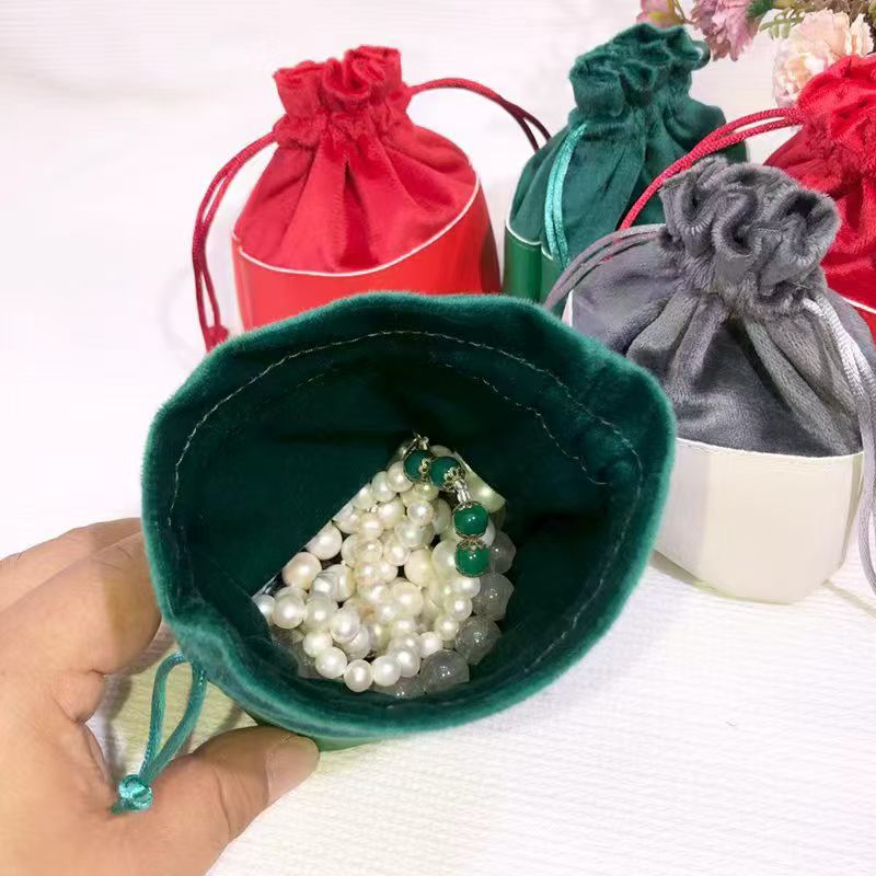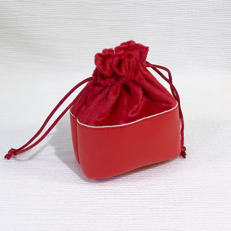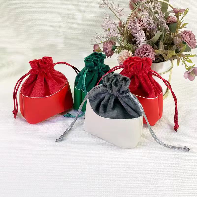 Custom Logo Velvet Drawstring Jewelry Bag Stamp & Seal Bags With Leather Spliced Bottom